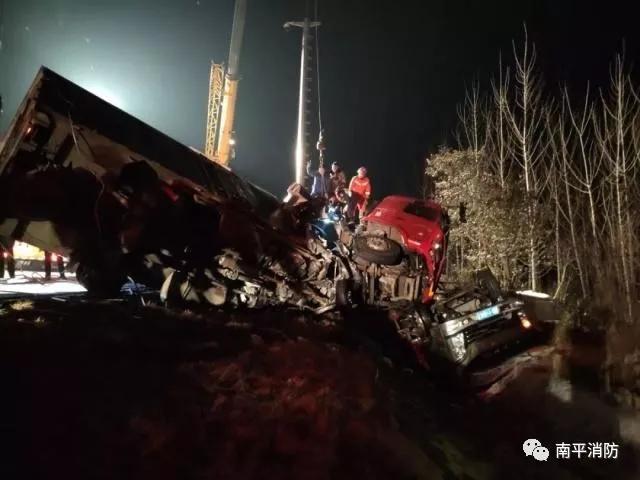 2時18分,消防隊員到達現場協助展開救援,根據現場情況,現場指揮員立即將救援力量分成兩組同步實施救援,一組力量負責利用液壓頂桿和液壓剪鉗等工具,對駕駛室進行破拆,增大被困人員的活動空間,在救援過程中駕駛室被困人員出現意識模糊情況,消防員迅速利用現場醫護人員提供的供氧設備給被困者輸送氧氣,另一組力量利用液壓剪鉗對車底被困人員周邊車的零部件進行剪切,再利用吊車對兩輛貨車進行分離后,使用液壓破拆工具對進行車輛進行破拆。經過緊張的救援,兩名被困人員被成功救出,移交120救護車送往醫院救治。