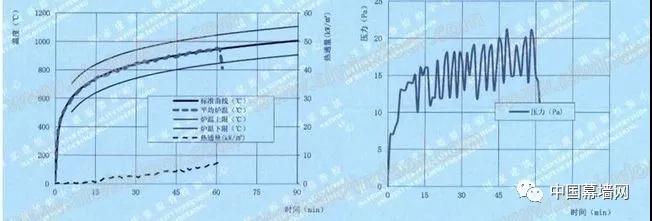 5.1.2 溫升曲線及距試件背火面1米處熱通量曲線及爐頂壓力
