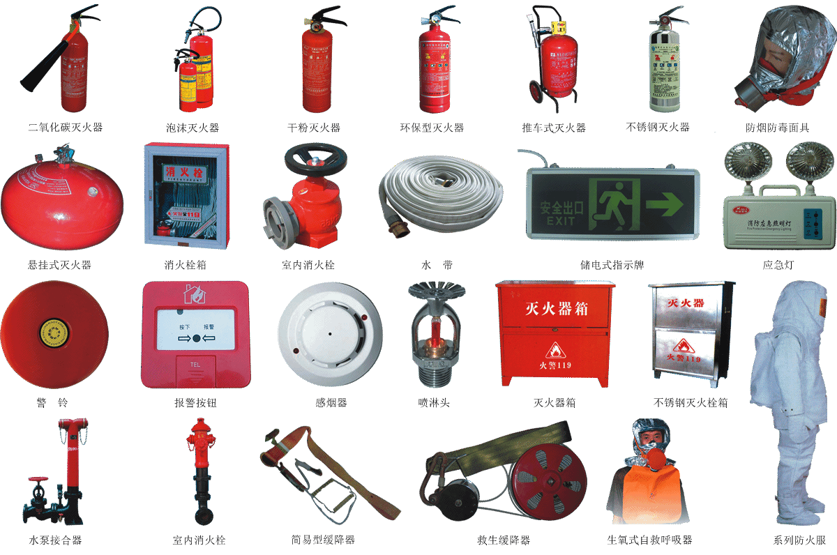 滅火劑 (泡沫滅火劑 干粉滅火劑 氣體滅火劑 水系滅火劑 煙霧滅火劑 其他滅火劑 )